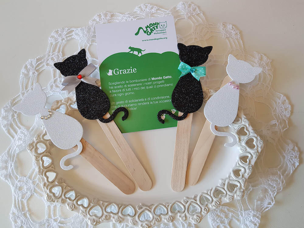 Appuntamenti importanti che possono diventare ancora più belli, per te e per gli altri, scegliendo le bomboniere di Mondo Gatto. Un gesto di solidarietà che ci permetterà di aiutare i gatti del rifugio e tanti altri gatti in difficoltà.